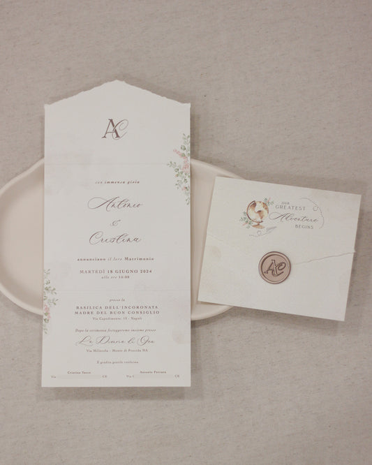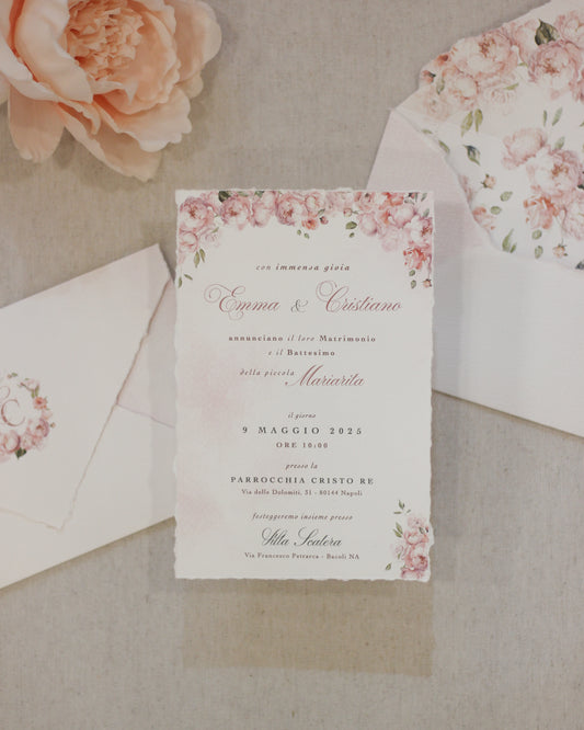 Dusty Rose - Partecipazione con Busta Artigianale taglio vivo