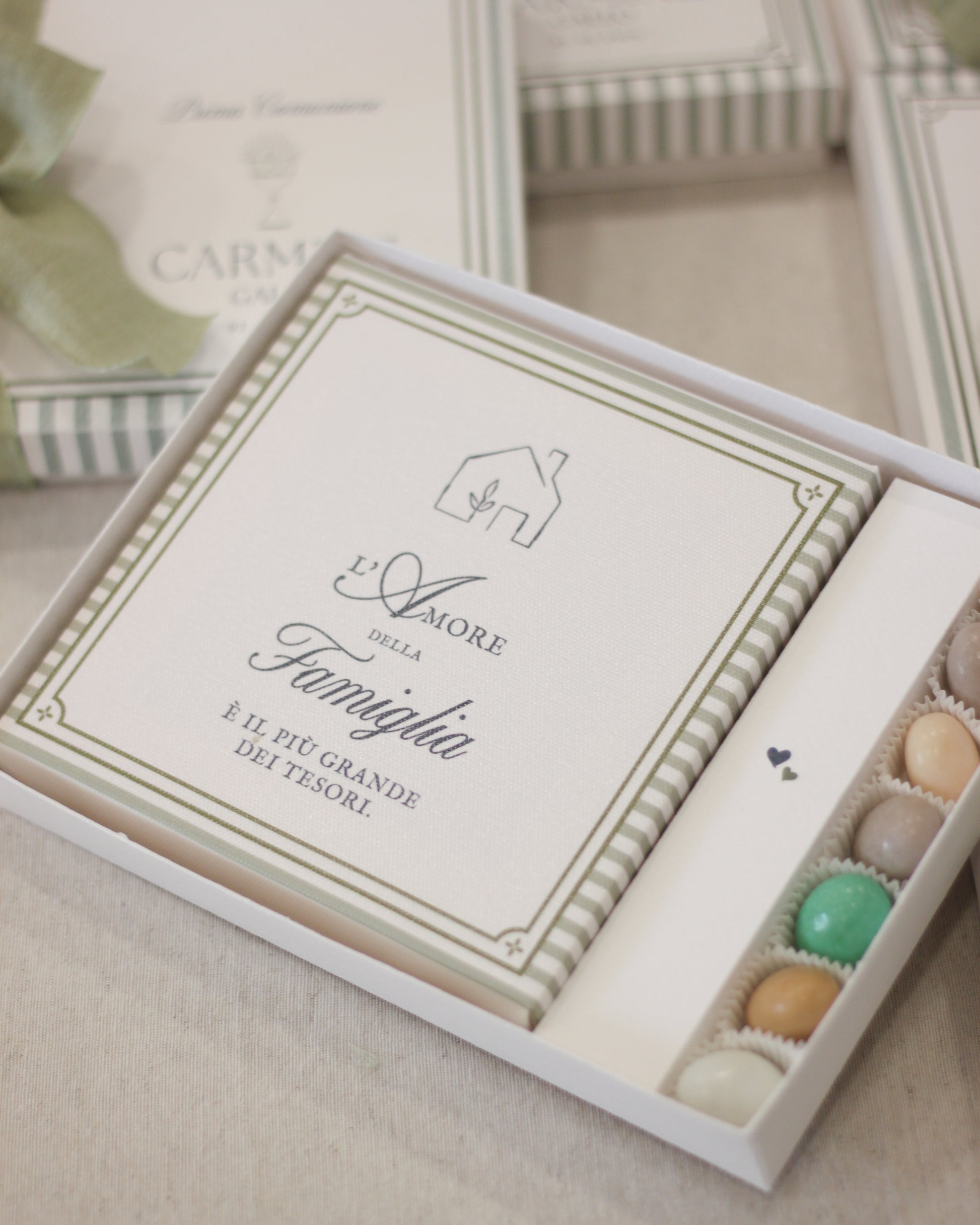Confezione: Ogni quadretto è fornito in un elegante Box Regalo sempre Personalizzata che valorizza la bomboniera.