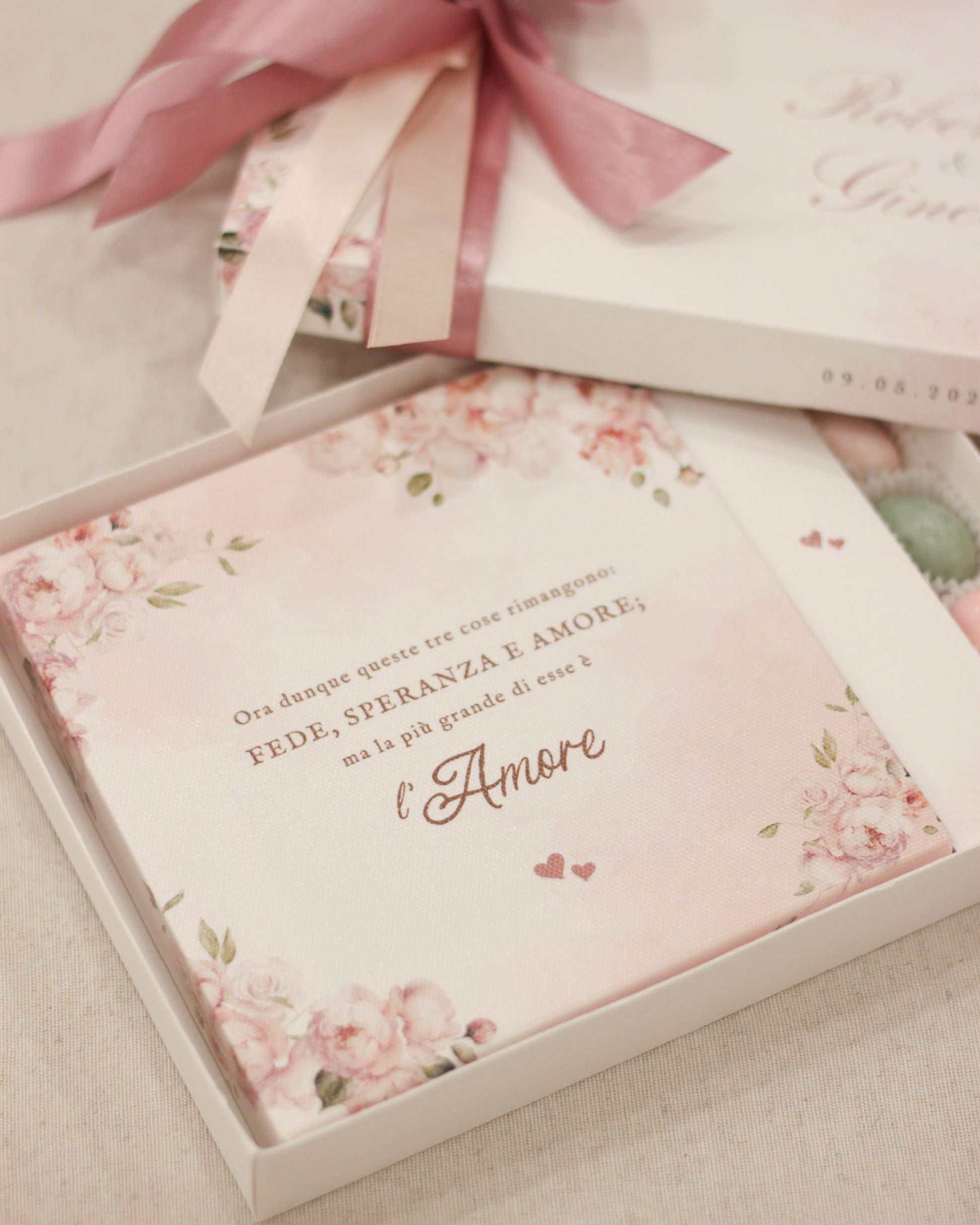 Confezione: Ogni quadretto è fornito in un elegante Box Regalo sempre Personalizzata che valorizza la bomboniera.