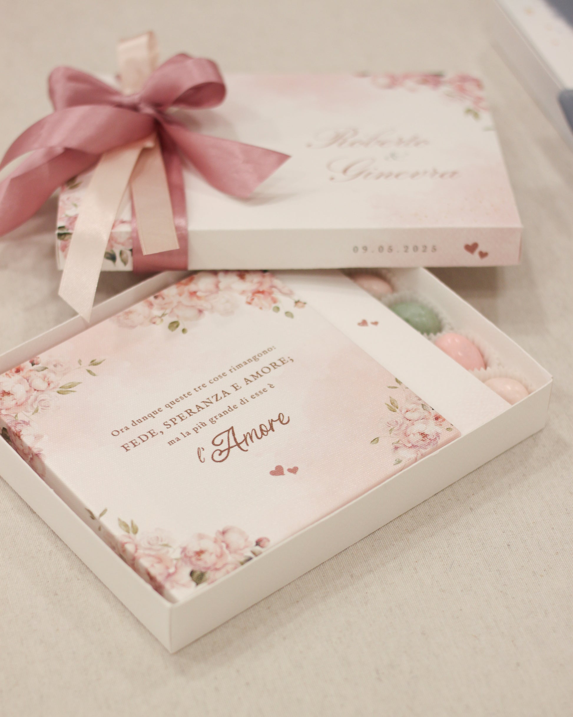 Dettagli Evento: Aggiungi nomi, data dell'evento o una piccola frase sulla confezione per un ricordo duraturo.
