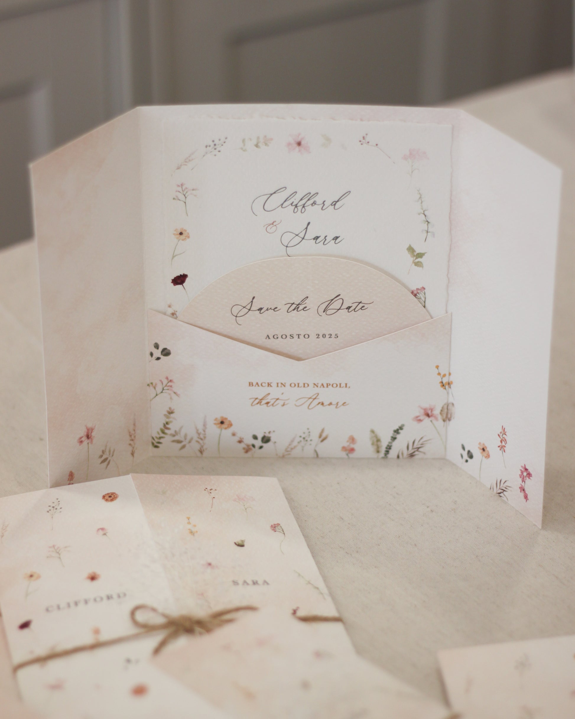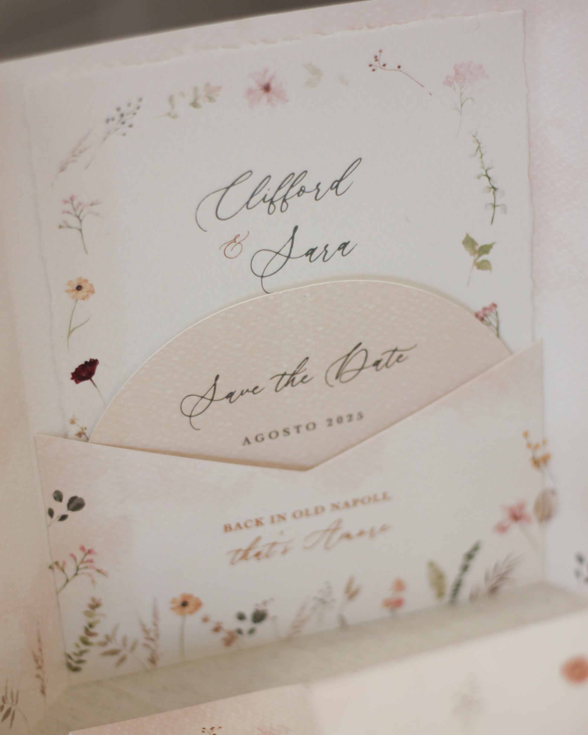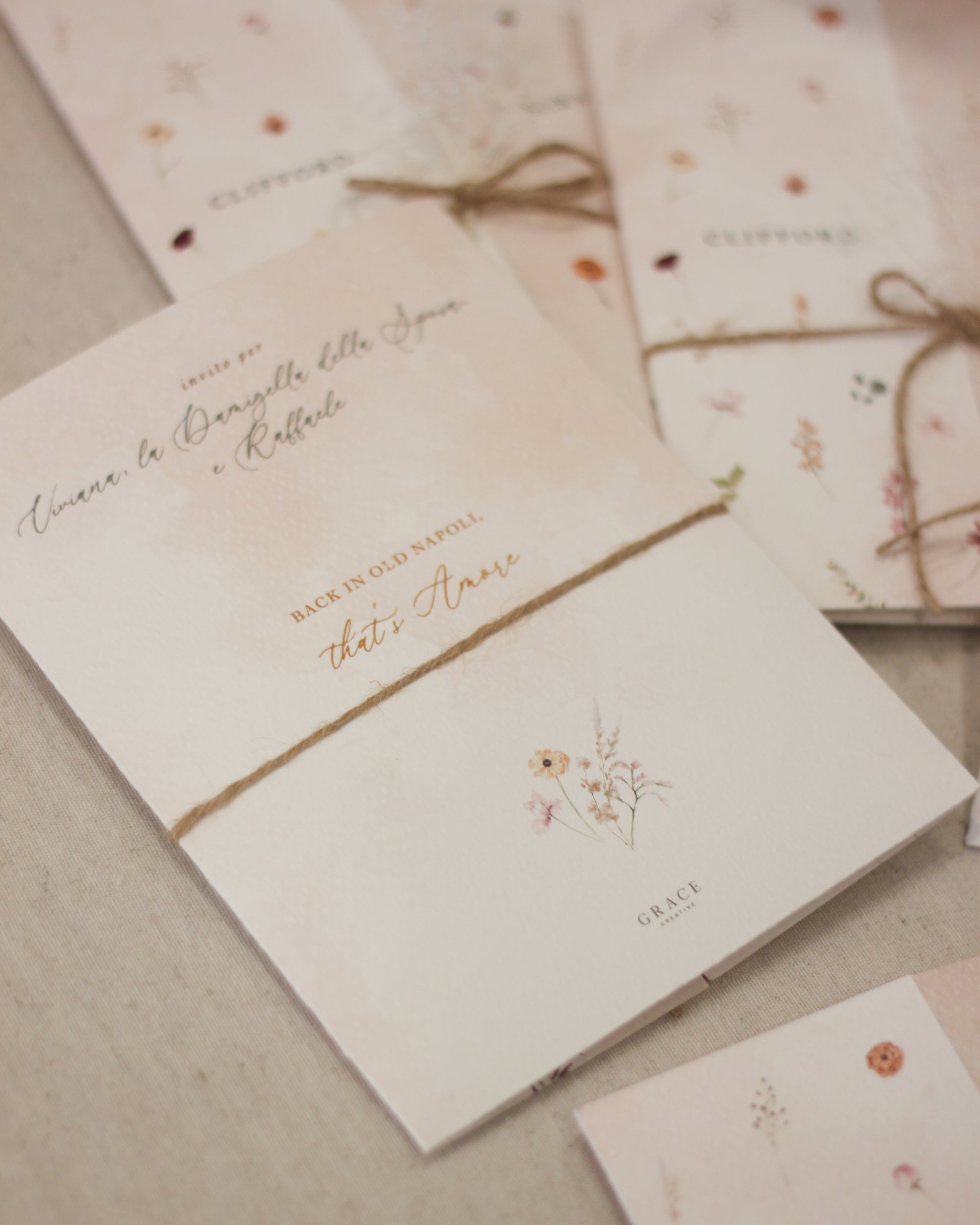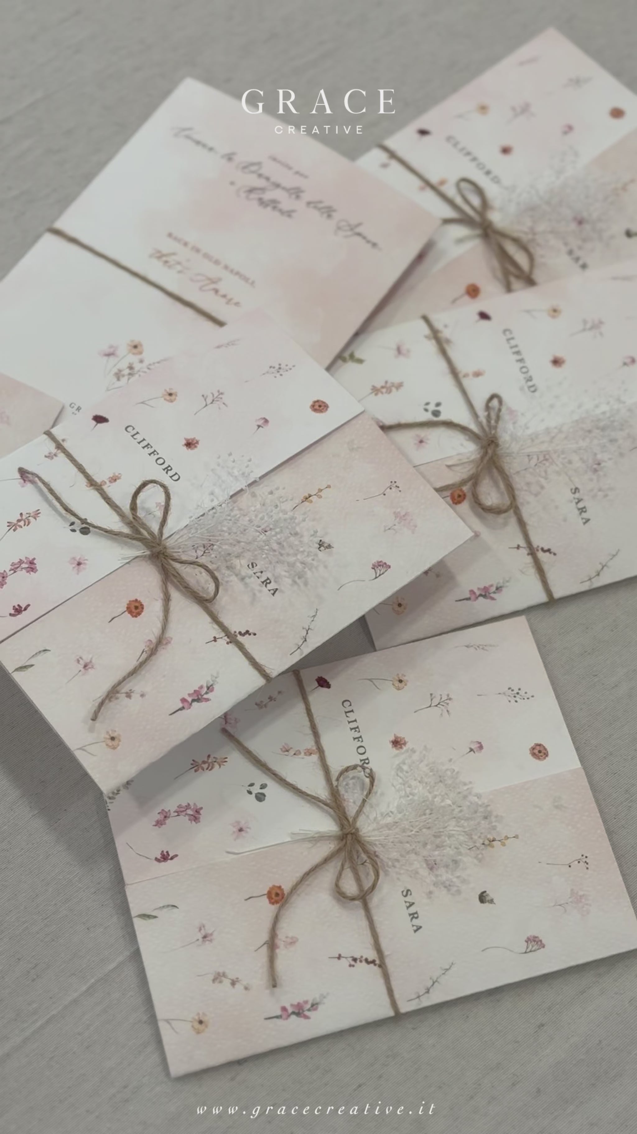 N.B. Qualora si optasse per l'acquisto senza chiusura, l'invito sarà rilegato con un cordino in juta o un nastro in raso a scelta.